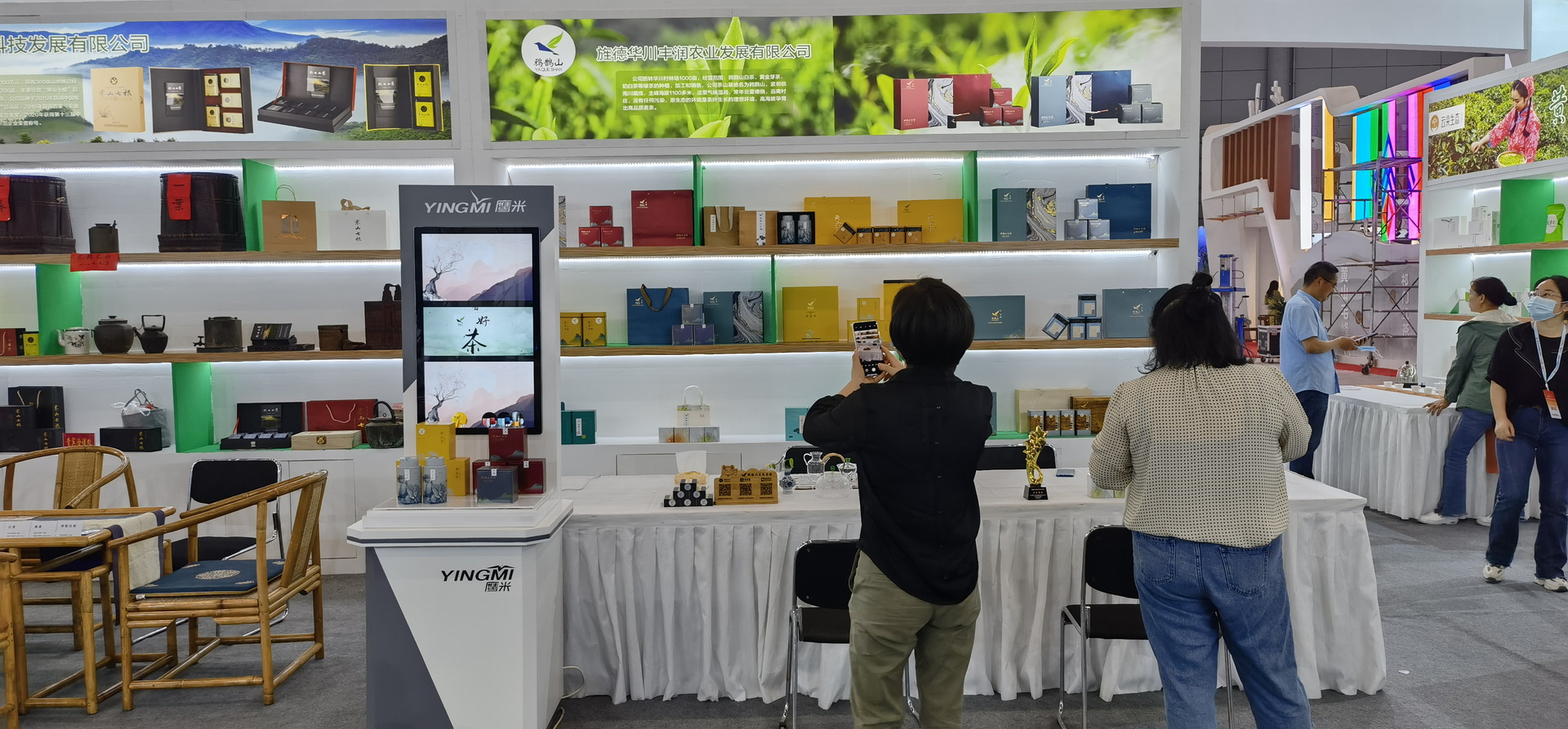 自2005年以來,安徽國際茶產業(yè)博覽會已成功舉辦13屆,成為國內較有影響力的茶葉行業(yè)品牌展會,每屆均吸引境內外眾多茶企入駐。本屆茶博會目前已經有廣西六堡茶、廣東陳皮茶、福建福鼎白茶、湖南安化黑茶等12個省外境外區(qū)域的30多家茶企參展。同時,將有超過1200家專業(yè)采購商前來茶博會參觀采購。對于廣大茶友和群眾來說,本屆茶博會看點豐富,滿足賞、游、玩、品、購各項需求,亳州花草茶也將首次在茶博會上亮相。雖因疫情原因,原定2021年5月14-17號的第十四屆茶博會暫緩舉行,但我們可以靜待茶博會開展的好消息! ![]() 茶博會現(xiàn)場 ![]() 我公司的鷹米互動展示系統(tǒng)也參加本屆茶博會,參與茶品的展示工作。鷹米互動展示系統(tǒng)為知名茶企鴉鵲山白茶做產品互動展示,5月13號就在現(xiàn)場布展結束,這次根據(jù)展品是茶葉的特性,根據(jù)不同形狀的茶葉包裝,采用的是重力感應,只需要拿起展品,互動展示系統(tǒng)就會播放對應展品的視頻介紹,身臨其境,了解該品牌茶葉的同時,頁面上的視頻互動展示能看到茶葉生產地,茶葉特征等信息,從而更好的展示和講解產品,方便客戶做出更好的選擇,是新穎的產品展示方式。互動展示系統(tǒng)能夠統(tǒng)計產品被關注、購買的次數(shù),能夠為營銷決策提供有力的數(shù)據(jù)支持。